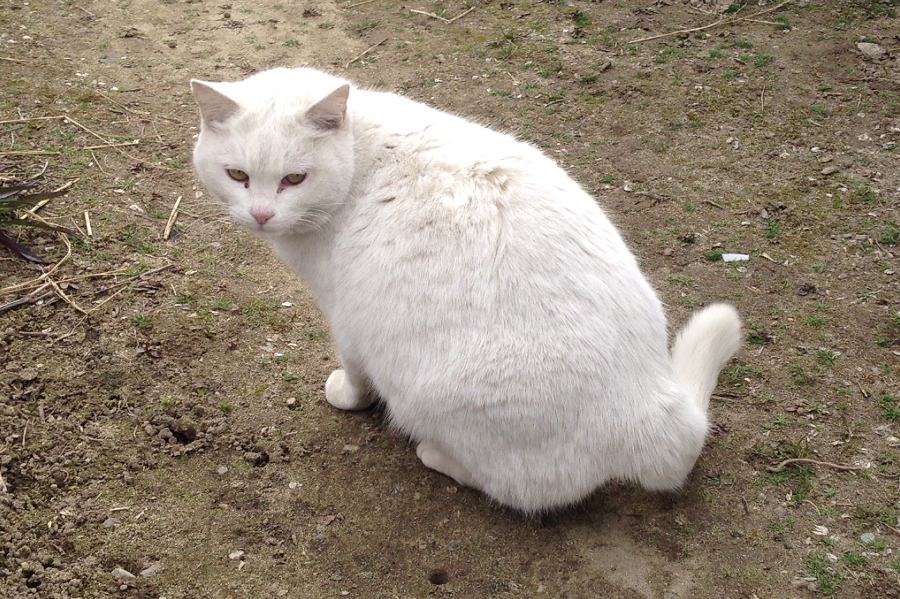 真っ白な猫ってあんまり見たこと気がするけど、その立ち振る舞いはどこか妖精っぽい感じで頭良さそう。じつはこの白猫さんはデブキジの母親なのだとか。年を食っているせいか、人間の扱い方がうまく、距離をとるのも上手。完全に人への警戒心は解かないものの、相手が危害を加えないとわかると、寄ってきて撫でろとばかりに背中を見せる。