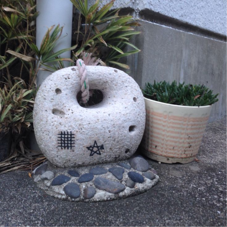街の至る所にドーマンセーマンの印が入った軽石が目につく。