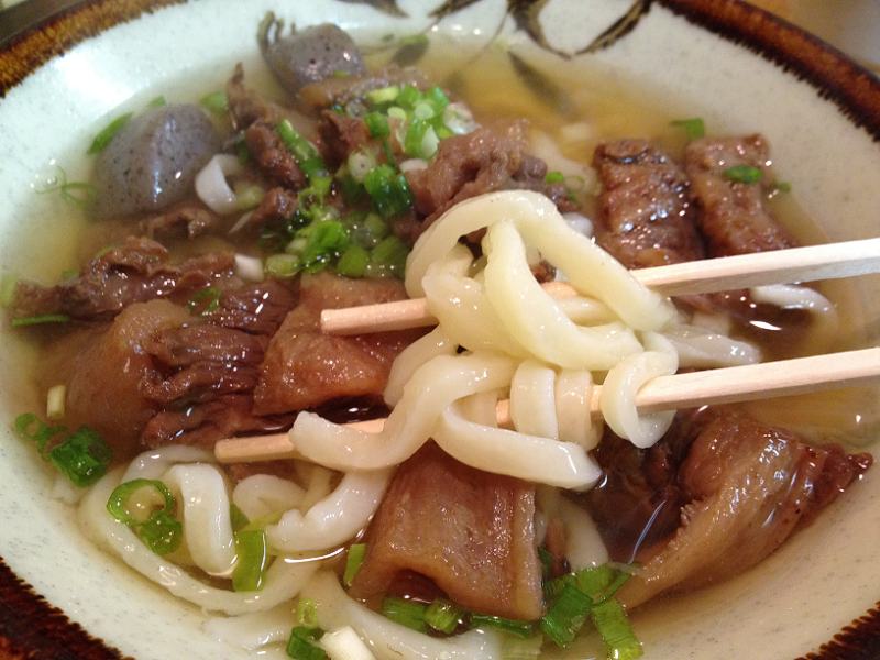朝早くからけっこうお客さんがいるなあ。まずは人気の牛すじうどん小380円を注文。ここは注文を受けてからうどんを茹でるので(朝だけ?)食べるまで時間がかかるが、逆に言うと茹でたてが食べられる。ナイス! 牛すじうどん、けっこう牛すじが多いし、うどんは捻じれが入っててコシもあり美味しい。いいお店だな~。