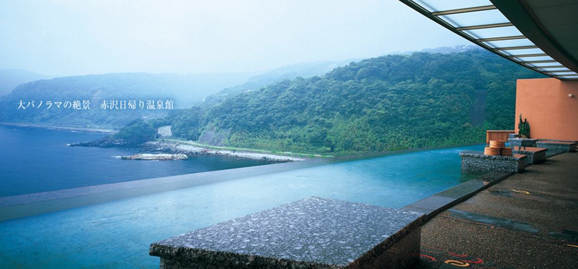 沼津港からもけっこう時間がかかって、ようやく赤沢温泉郷に到着。ウェブサイトで見ていたけれど、やはり非常に景観のいい温泉。見事なまでのオーシャンビューで、太平洋の景色を堪能した。