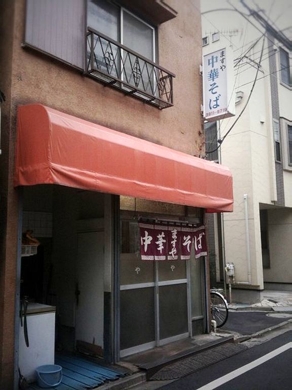 まずは公園めぐりの前に昼飯を食べに上中里へ。この駅の近くには、昔ながらの中華そばが食べられる「ますや」というお店があるのだ。半チャンラーメン発祥の店、さぶちゃん@水道橋、そしてそのさぶちゃんが修行していた伊峡@神保町の系譜とかかわりがあるのかは分からないが、同じ小池製麺所の麺を使ったシンプルでノスタルジックな中華そばを提供している。