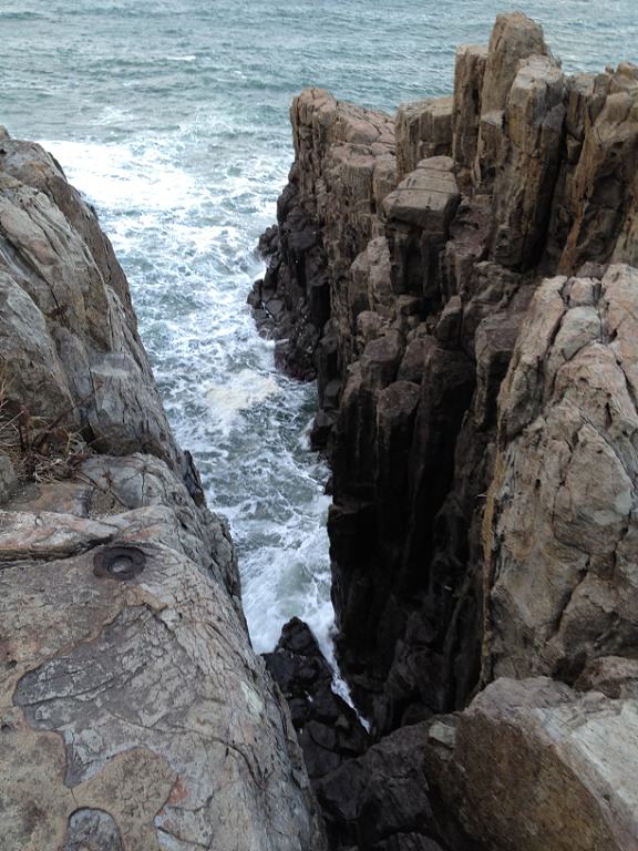 実際に断崖絶壁に立つと、自然の作り出した壮大で奇異な景観に興奮して、絶壁のかなり先の方まで進んで覗きこんでしまった。柵もないし、ロープもないし、強風が吹く場所だし、単なる観光出来ていても、油断できない場所だった。気を抜くと25mもの落差のある海に落ちてしまいそうだった。