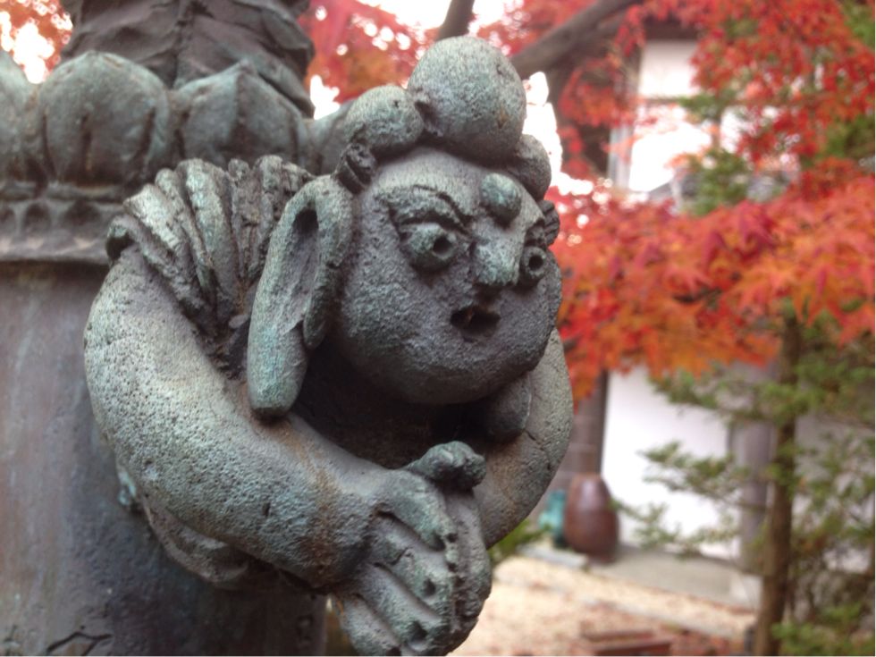地蔵院本堂(国指定重要文化財)周辺には、コミカルな像があったり風情のある鐘楼があったりして、しばし写真撮影。