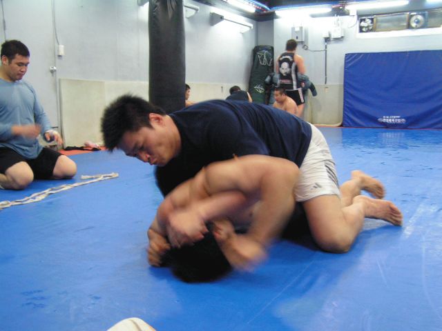 練習でも圧力で相手を圧倒することが多いムベさんはかなり豪快。バックマウントとってから、フルネルソンに行ったりしてた。相手はもちろん悶絶タップ(笑)。