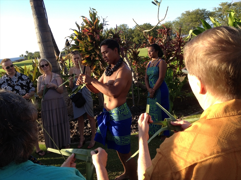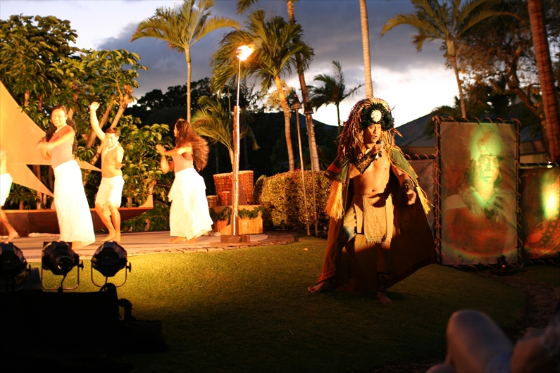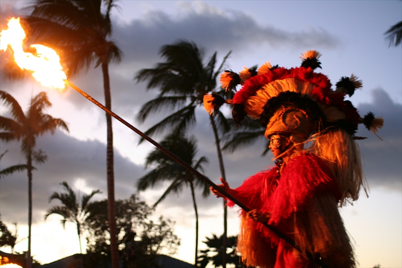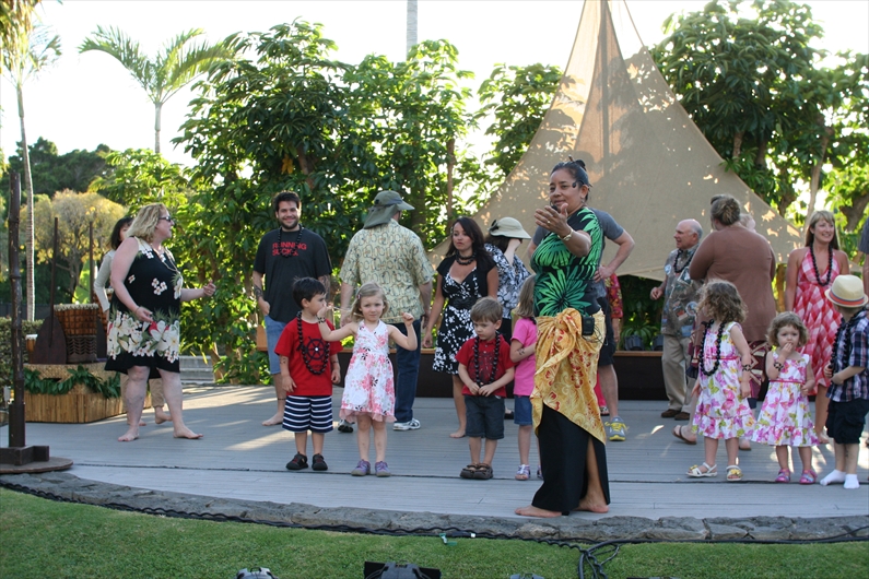 夕方からはホテルに戻ってルアウ・ショーへ。ハワイ文化の紹介と言うよりも、ポリネシアの伝統文化の色合いが強かったけど、フラダンスを教えたり、民俗工芸を一緒に作ったり、なかなかいい内容だった。