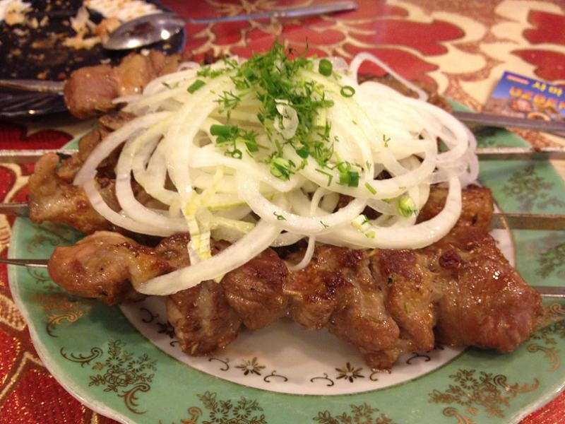 今回、入店したのはサマルカンドという店。看板にはサマリカンドと書いてあったり、同名の競合店が近くに何店かあるようだが、詳細は不明。ちょっと不機嫌そうな中年男性が韓国語で接客してくれた。