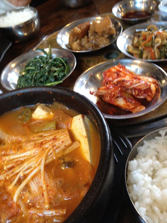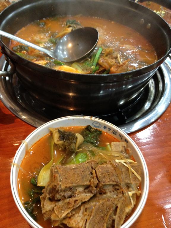 昼食はキムチチゲ。オーソドックスだけど、酸っぱいキムチで作ったチゲは非常にうまい。肉塊がごろごろしていると、なおいい。スープものではプデチゲと並んで、たまに食べたくなる料理。