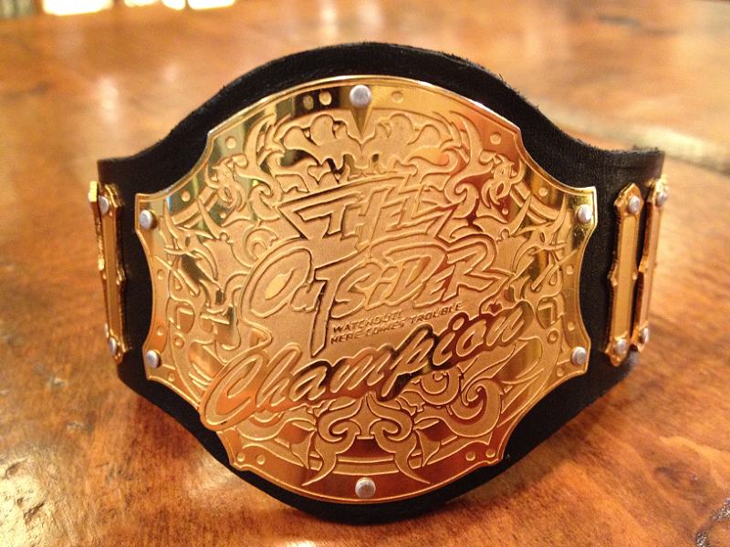 THE OUTSIDERのミニサイズのレプリカベルト。日本の格闘技団体のベルトは韓国で安く作られて輸入されることが多いんですよ。