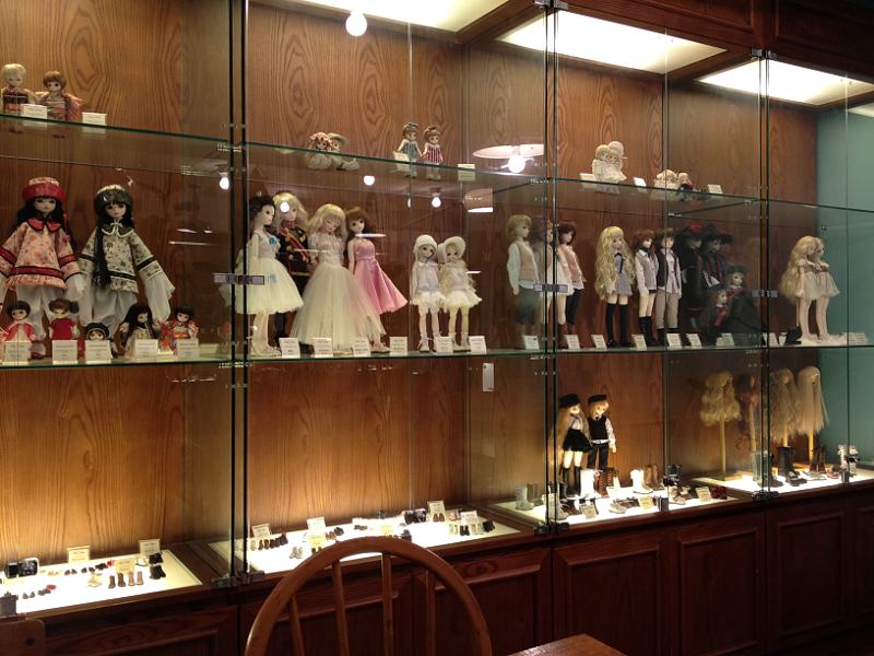なんかー、お店は古洋館っぽい感じでー、洒落てるなーと思ったら、カフェいっぱいに人形が飾ってあったんですよー。