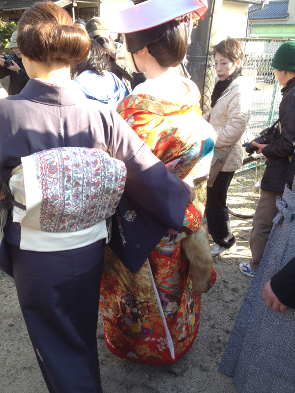 新郎・新婦、それぞれ狐の面をつけて着物を着ているんだけど、お尻には狐の尻尾がついている。見物客は先を争って新郎新婦のケツについている尻尾を写真に納めるのに躍起になっているのが笑えた。まあ、俺も必死になって尻尾を撮ってたんだけど。