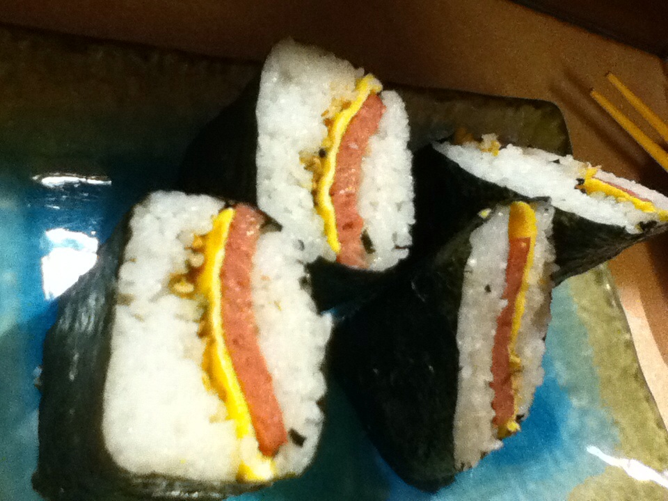 泡盛でちびちびやっていると嫁も合流。アットホームな雰囲気の中、気持ち良く飲み、最後はスパムにぎりで〆た。