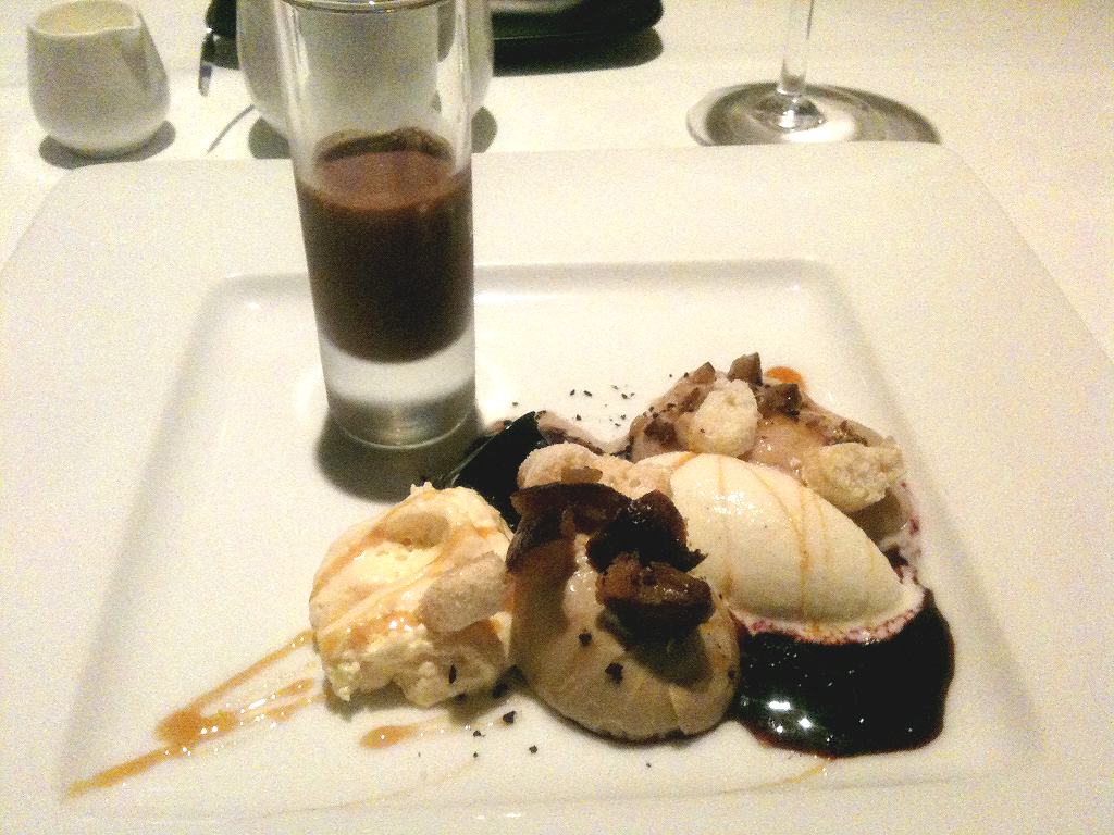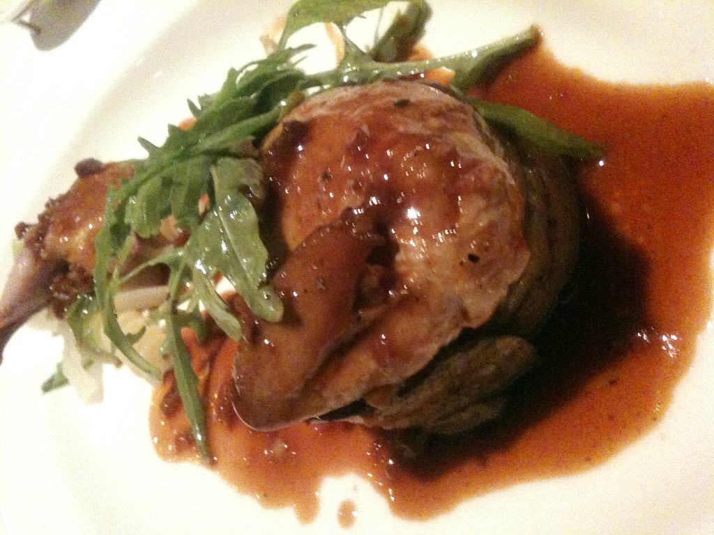 こちらはメイン料理。ウズラとフォアグラ。まいうー。