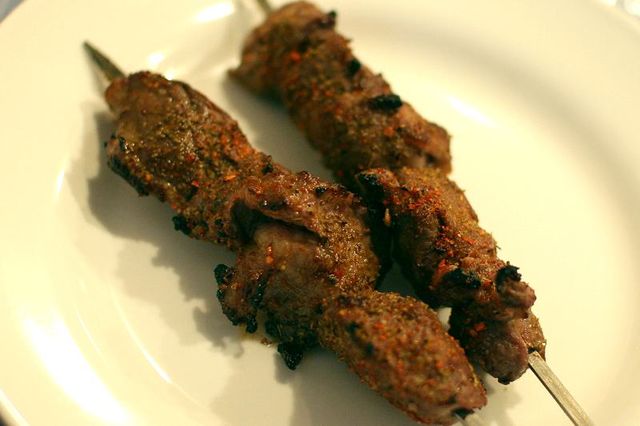 まずは羊串(マトン)を注文。都内で食べられる羊肉としては、破格な大ぶりの肉! 柔らかくてにおいもなく、クミンの香ばしい香りがいいなあ。個人的にはウッと来るぐらい臭みがあっていいが、日本ではこれが正解かな。二本(一本150円)からの注文だったけど、あっという間になくなってしまった。次に飲みに来るときはガッツリ食べよう。